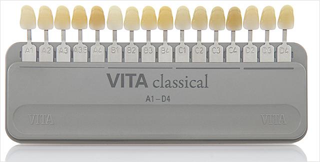 With the Classical VITA color guide there are 16 shades ranging from A1-D4, and you’ll be able to find the best shade for your dental restorations. The classification range allows you to find the shade closest to the tooth and then define the brightness.